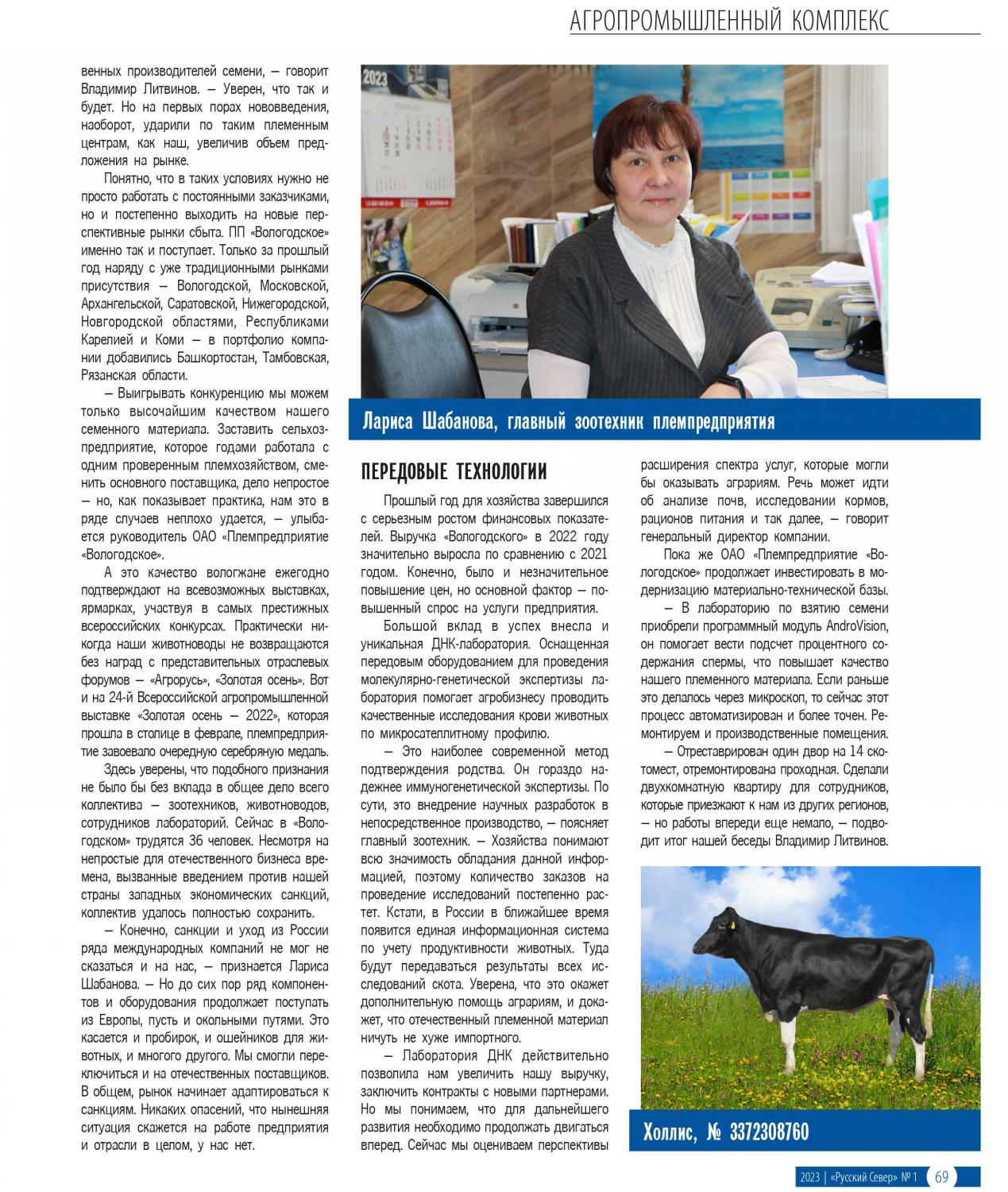 Племенное предприятие уже почти семь десятков лет ведет планомерную и успешную работу по обеспечению животноводов высококачественным семенным материалом. Сейчас в хозяйстве 45 быков-производителей. Стадо постоянно увеличивается. Все быки с высоким генетическим потенциалом закуплены в племенных заводах Вологодской, Ленинградской и Архангельской, Владимирской, Нижегородской областей — результат работы отечественных селекционеров.